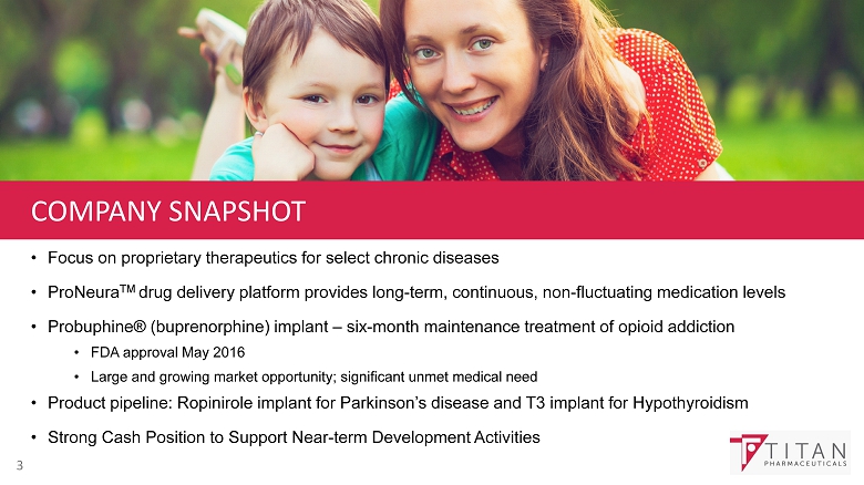 | TITAN | PHARMACEUTICALS CORPORATE PRESENTATION SUNIL BHONSLE JUNE 2016 © 2016 TITAN PHARMACEUTICALS INC. NASDAQ:TTNP |