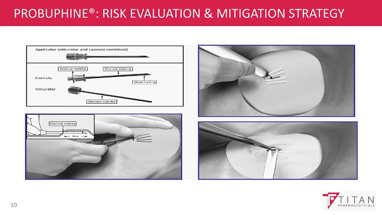 PROBUPHINE®: COMMERCIALIZATION PLANS 9 Partnership with Braeburn Pharmaceuticals, Inc. for development and commercialization in U.S. and Canada* • Milestone payments: • Upfront : $15.75 million • Approval Milestone: $15 million • Sales Milestones: $165 million • Tiered Royalties on net sales: mid - teens to l ow 20s (%) • U.S. Patent term to April 2024 • First made available to patients in June 2016: • More than 800 health care providers certified in the first 15 days • 262 training sessions across 55 cities (2,000+ providers) over 6 weeks in June/July 2016; capacity to train ~ 4,000 healthcare providers in 2016 • Exploring reimbursement approaches with insurers, including value - based programs, payment assistance program, rebates * Braeburn has sublicensed Canadian rights to Knight Therapeutics