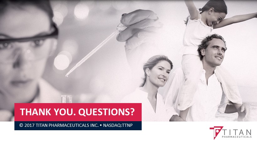 THANK YOU. QUESTIONS? © 2017 TITAN PHARMACEUTICALS INC. NASDAQ:TTNP
